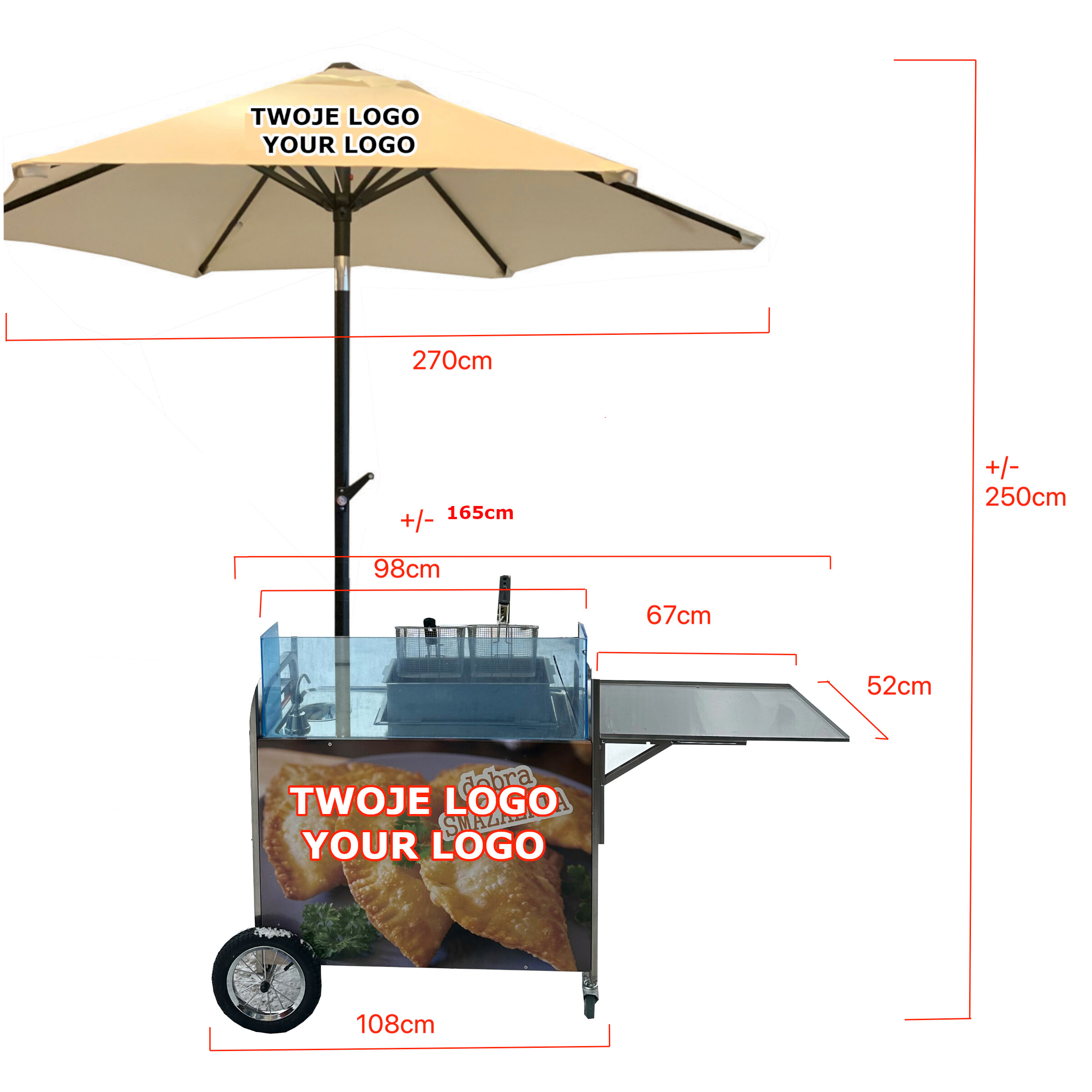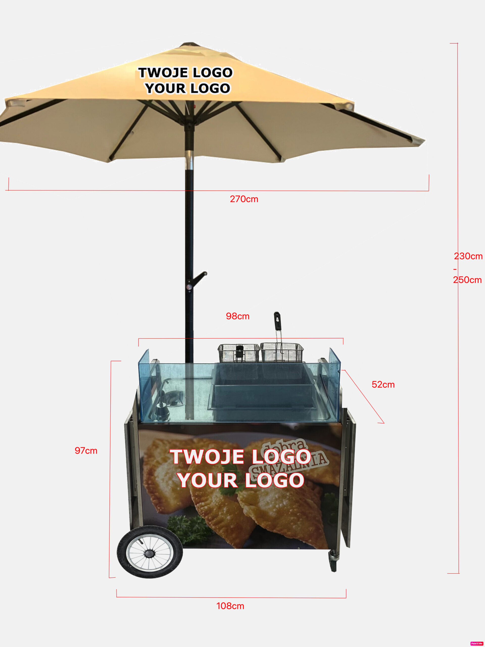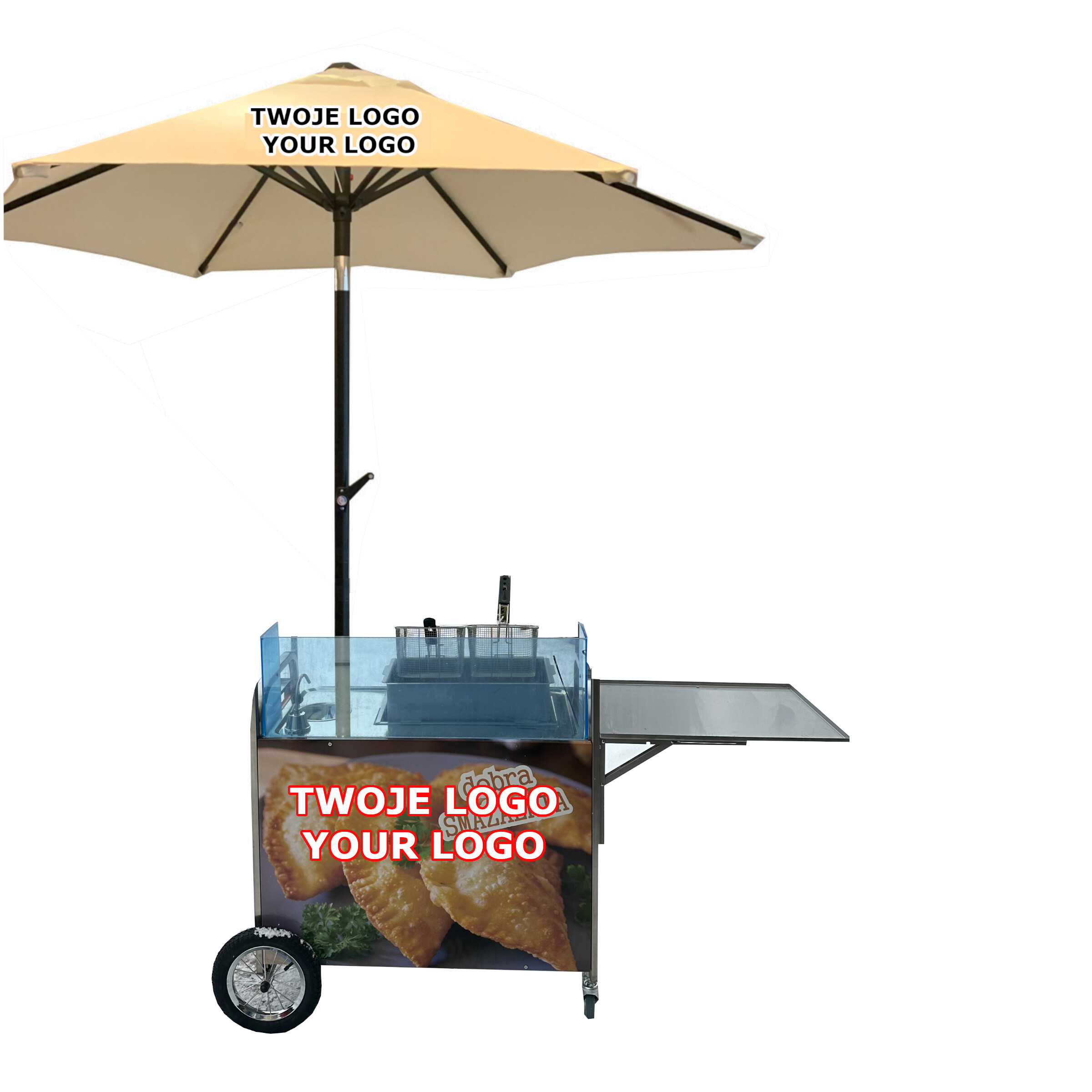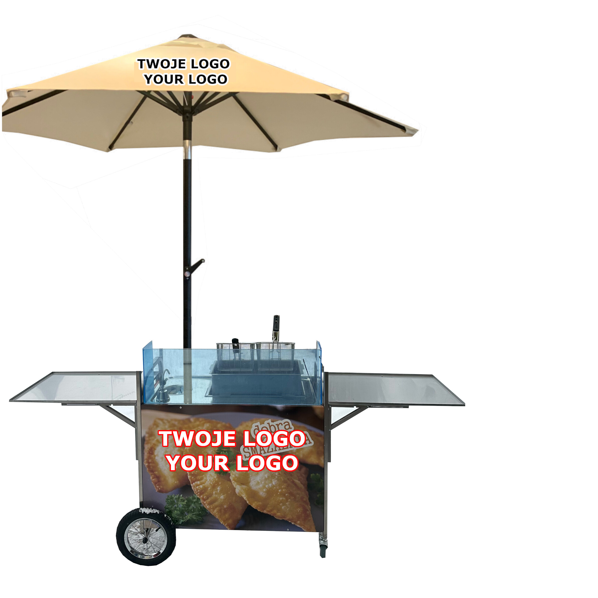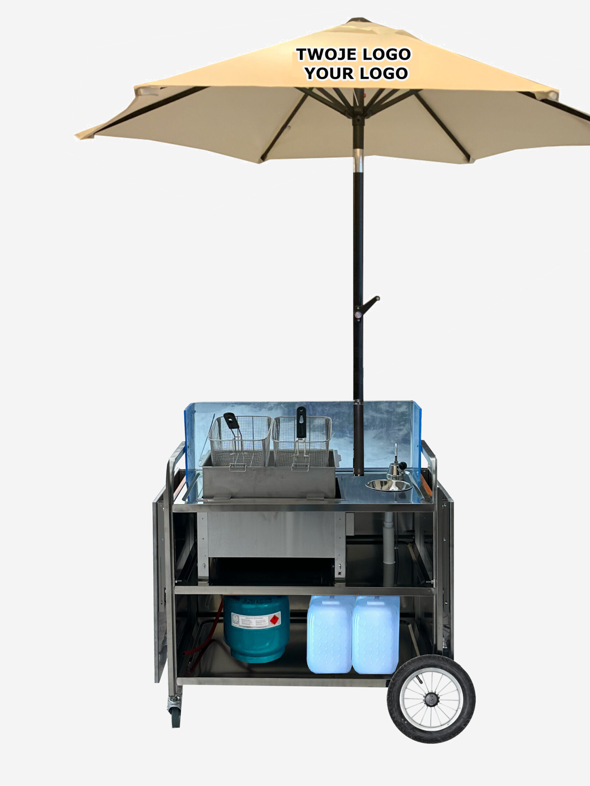 Wózek gastronomiczny z frytownicą gazową i parasolem